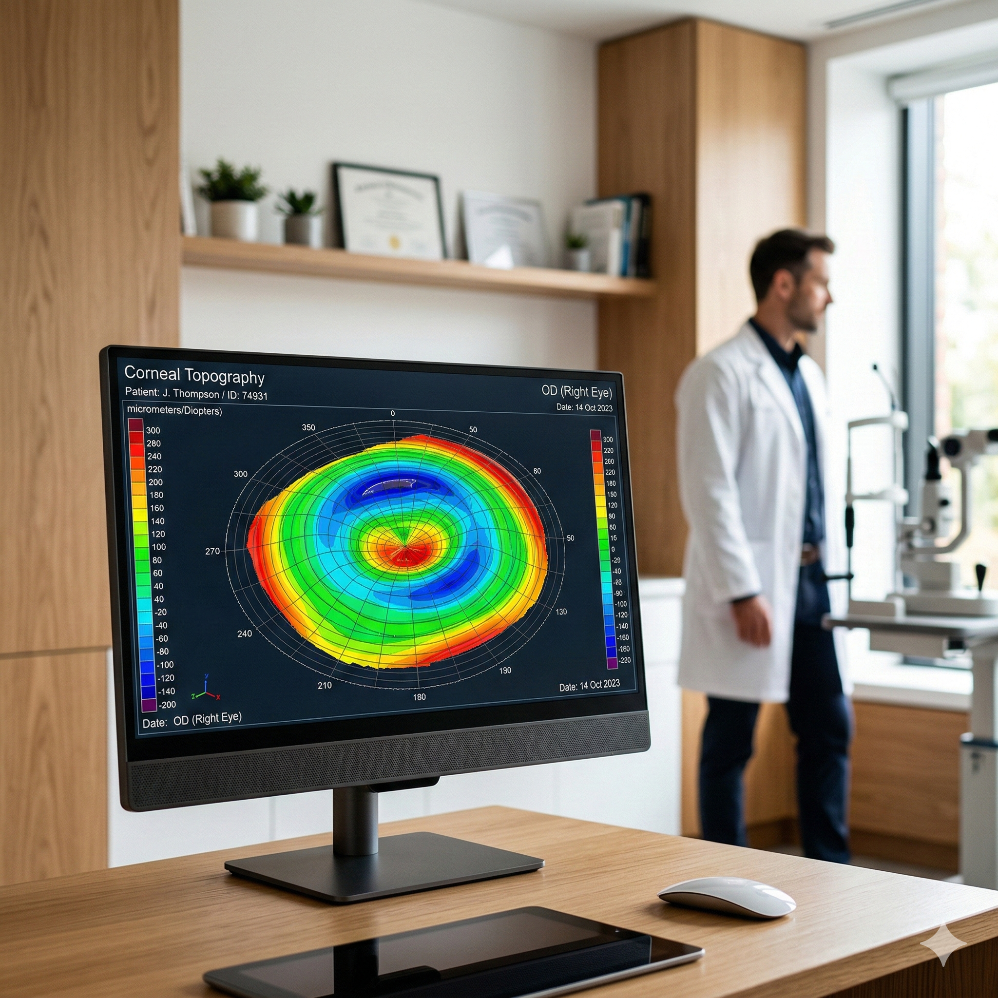 Corneal Topography: We create a 3D map of your eye’s surface to measure every curve and "hill" with microscopic detail.